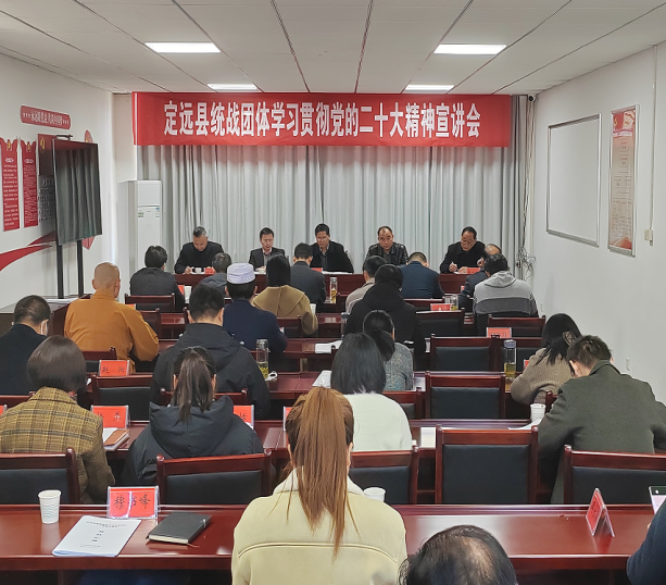 11月16日,定远县召开统战团体学习贯彻党的二十大精神宣讲会,传达学习党的二十大和二十届一中全会精神,安排部署统战团体学习宣传和贯彻落实工作。县知联会、新联会、佛协、伊协和基督教“三自会”等统战团体20余人参会。