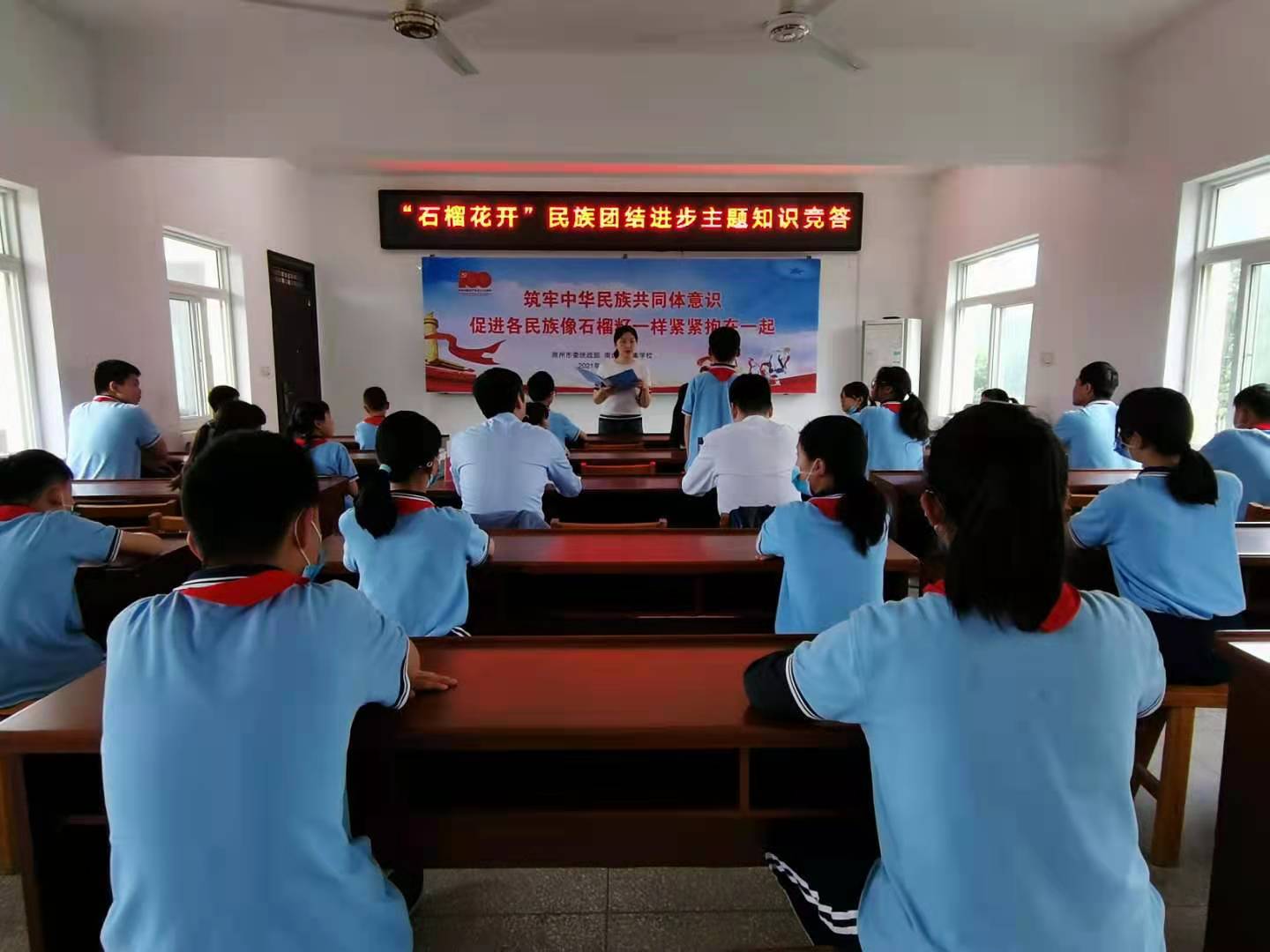 为深入开展民族团结进步创建活动,进一步铸牢中华民族共同体意识,5月18日,市委365bet网投娱乐_英国365bet官方网_日博365哪个是真的、南谯区施集学校联合举办“石榴花开”民族团结进步主题知识竞答活动。