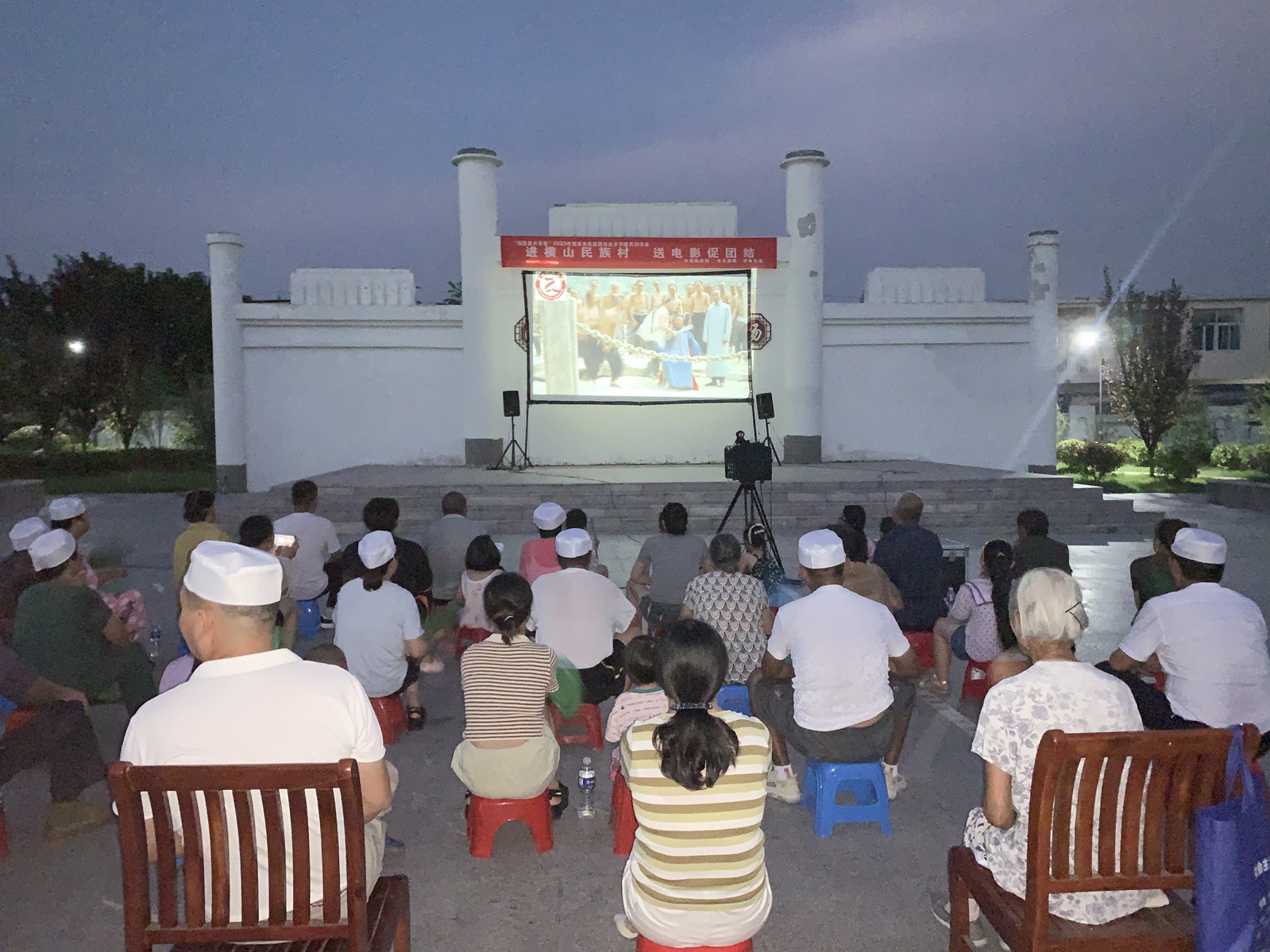 傍晚时分,夜幕降临,悠扬的音乐响起,电影《红河谷》准时放映,该影片讲述了以20世纪初的中国西藏为背景,演绎了一段汉藏儿女生死相依的爱情故事和并肩抗战的英雄传奇故事。通过组织民族村党员、群众集中观看汉藏儿女并肩抗战的英雄故事,进一步铸牢中华民族共同体意识,关键时刻各族群众生死与共、命运与共,突出“中华民族一家亲,同心共筑中国梦”主题宣传,引导各族群众树立正确的祖国观、民族观、宗教观、文化观、历史观。